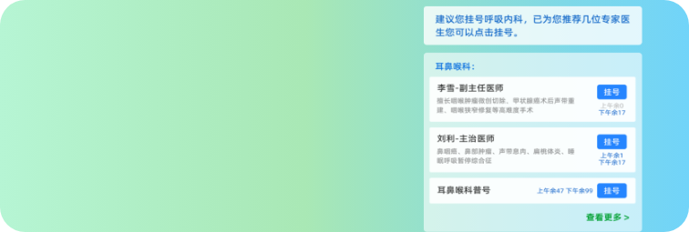 推荐结果附带便捷入口,实现从分诊到挂号的一站式服务闭环