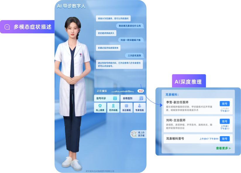 嵌入医院官方微信公众号、小程序、APP,患者在家中即可进行症状自查和科室推荐,提前规划就医行程。