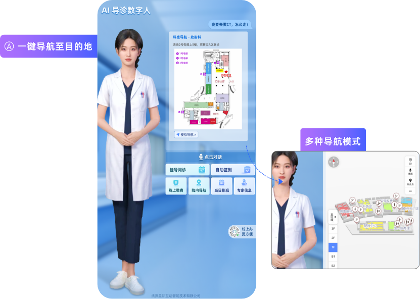 支持3D立体导航图、AR实景导航、平面路线图等多种模式,直观易懂,如同“医疗版高德地图”,引导患者快速到达。