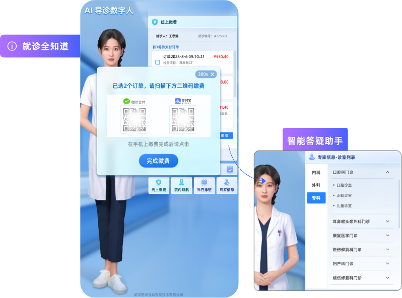 整合挂号、候诊、检查、取药、缴费等全流程环节,为患者提供清晰的下一步指引和等待人数预估,消除信息不对称带来的焦虑感。